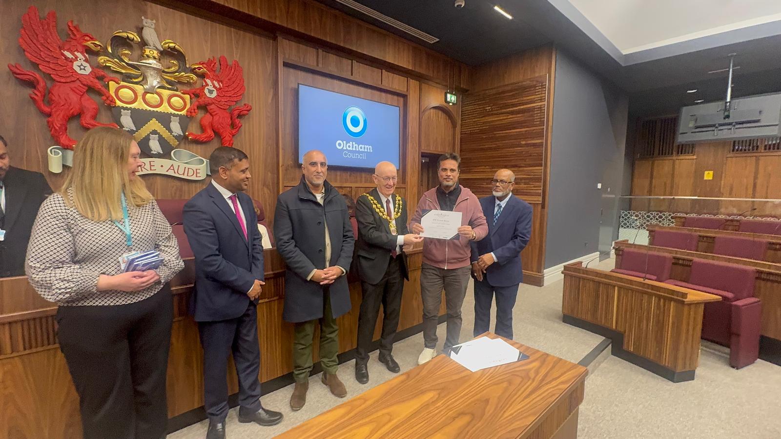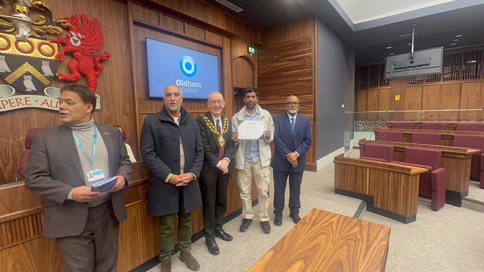 The certificates were proudly presented by the Mayor of Oldham, Councillor Eddie Moores, whose presence added great significance to the occasion. We are sincerely grateful to the Mayor for attending the ceremony and making the event truly special. As part of the occasion, ODDU also made a £200 donation to the Mayor’s Appeal, reflecting the organisation’s dedication to supporting the wider community.