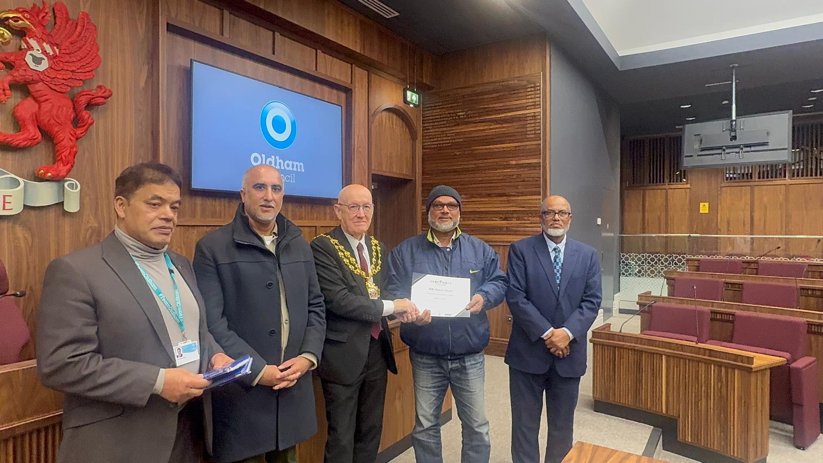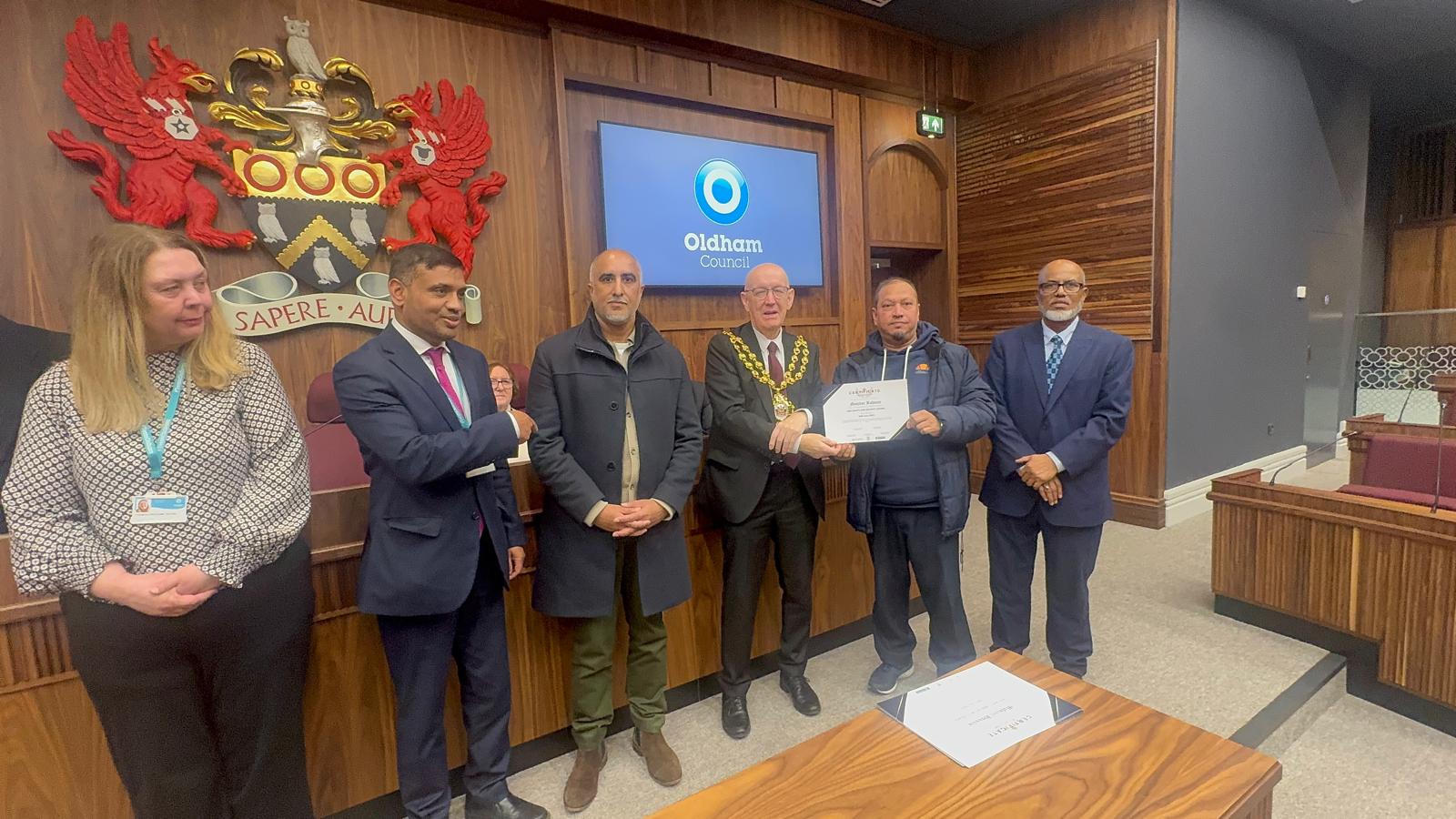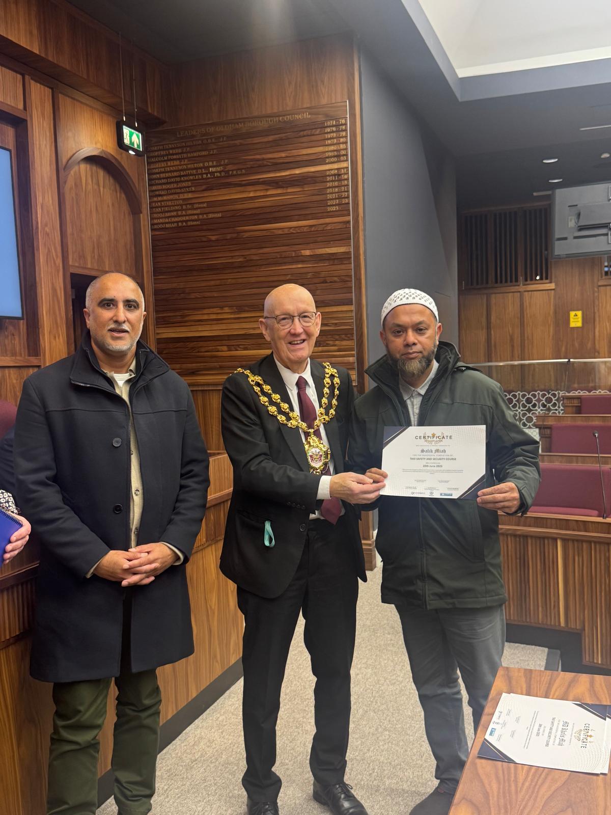 Taxi Safety & Security Course Certificates Awarded by Oldham Mayor Cllr Eddie Moores